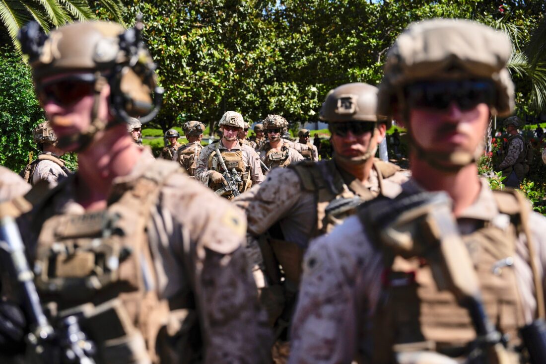 Major General Brandon Tegtmeier, commanding the 82nd’s 1st Brigade Combat Team, has established a forward command post within striking distance of the Iranian coast. The C-17 transports started landing at forward operating bases on March 30. The 15th Marine Expeditionary Unit is already in theatre aboard amphibious assault ships in the Gulf of Oman. None of this is being hidden — the deployments were announced publicly, the aircraft tracked by open-source flight monitors, the Marines photographed boarding landing craft.
